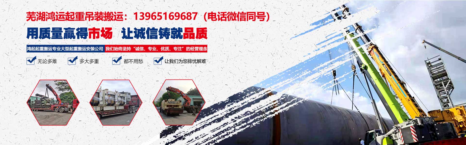 公司以居民、企事業(yè)單位搬場為基礎(chǔ)。建立了工業(yè)大件機器設(shè)備搬遷。小件運輸?shù)扰涮走\輸體系。能夠滿足不同客戶的需求。公司始終堅持以優(yōu)質(zhì)的服務(wù)為理念,提供以打包、整理、裝卸、搬運、安裝、擺放為一體的人性化服務(wù)。